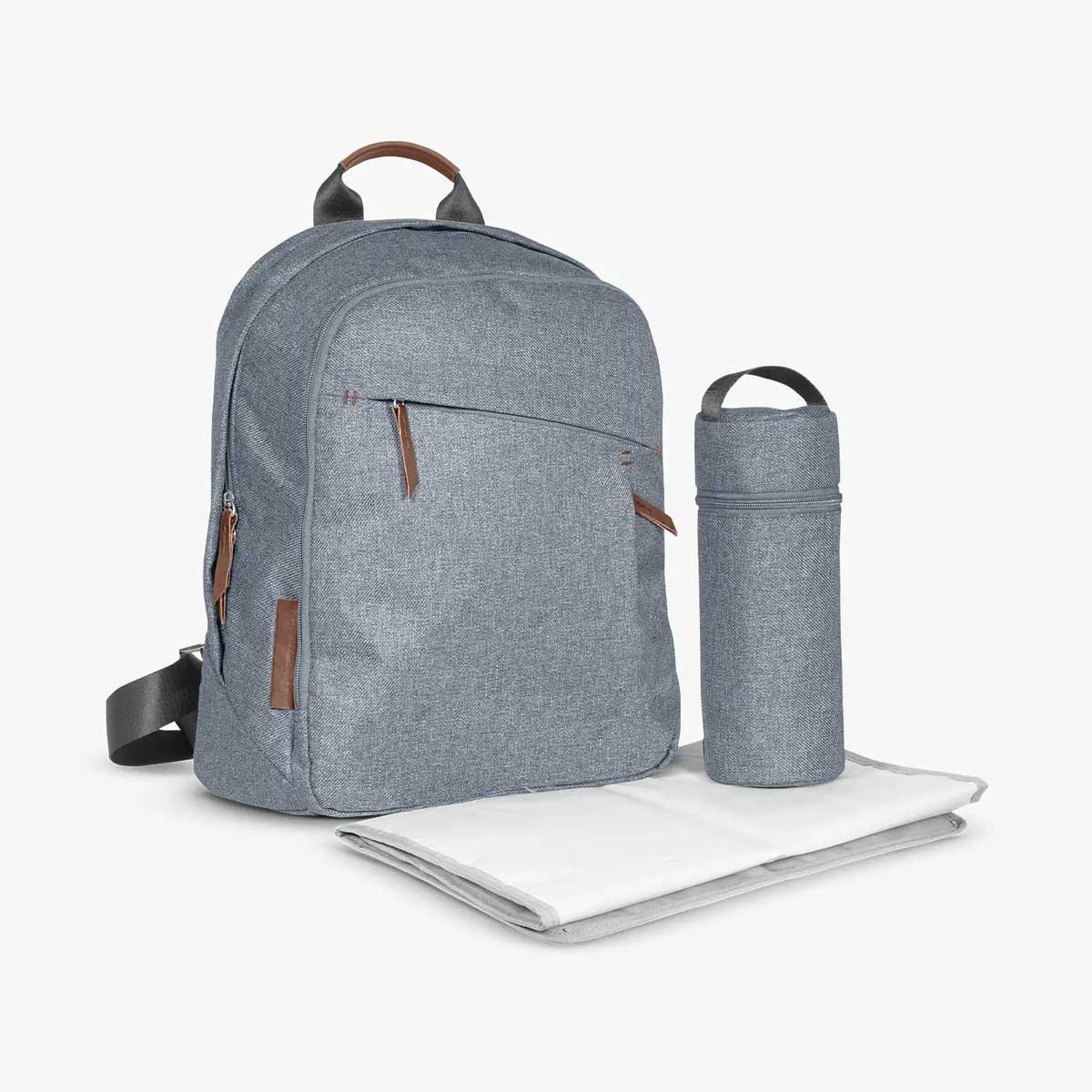 Para VISTA, CRUZ y MINU. En la espalda o en la silla de paseo, guarda todo lo que necesites en nuestra elegante Mochila cambiador. Su tejido de alta calidad y los detalles en piel van perfectamente a juego con tu silla de paseo UPPAbaby, mientras que las correas ajustables y los diversos compartimentos para guardar cosas te permiten llevar todo lo que necesites y salir de paseo con elegancia.