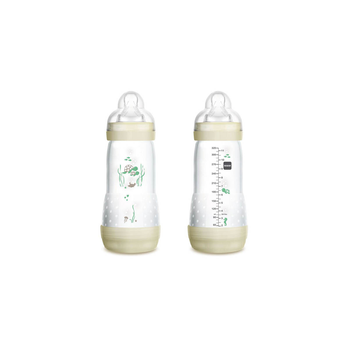 Biberón anti cólicos Easy Start 320 ml de Mam. Un biberón perfecto para recién nacidos ya que les permite beber a su propio ritmo además de evitar una ingesta excesiva de aire.