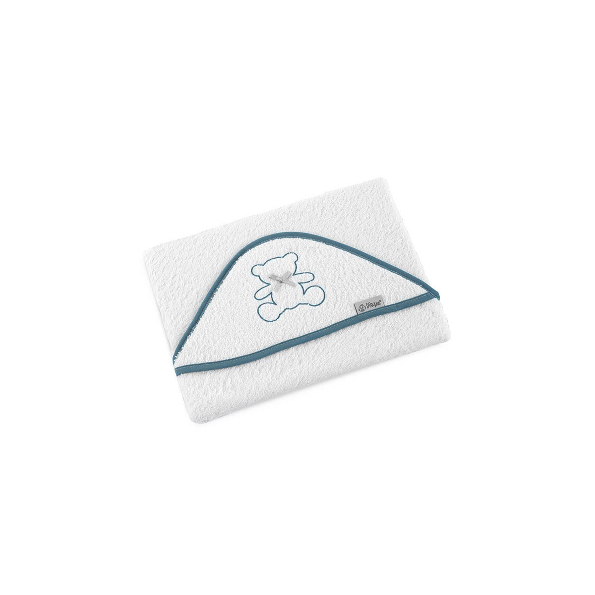 Una capa de baño en color blanco con ribete en tres colores disponibles con un bonito bordado de osito con lazo a juego con el color principal. Está fabricada con rizo de algodón 100% por lo que será muy respetuosa con la piel de tu pequeño incluso las más sensibles.