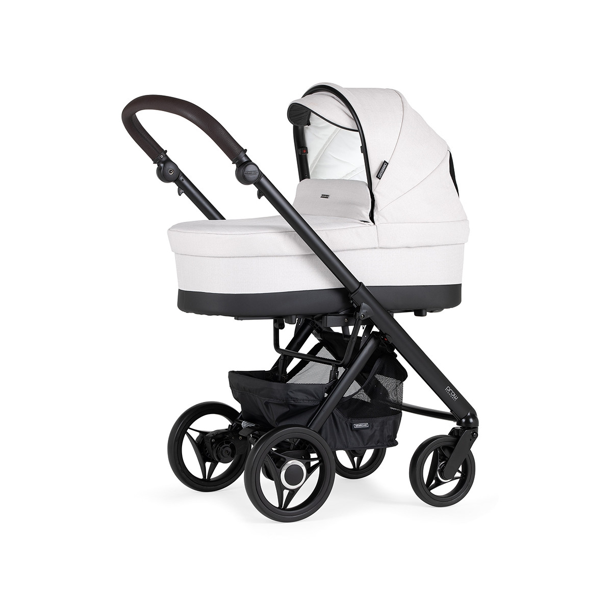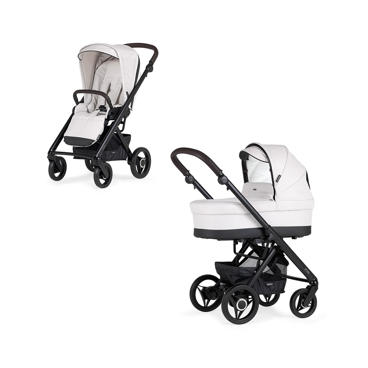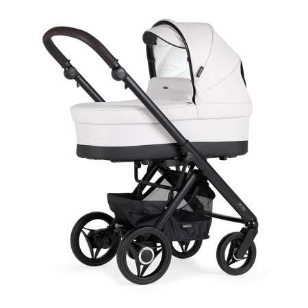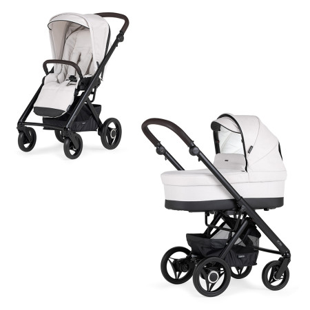 Este cochecito cuenta con detalles en ecopiel y tejidos exteriores de alta calidad que se entrelazan para crear un look casual atemporal. Los tejidos interiores, compuestos de algodón hipoalergénico, garantizan la comodidad y el cuidado de la delicada piel del bebé.