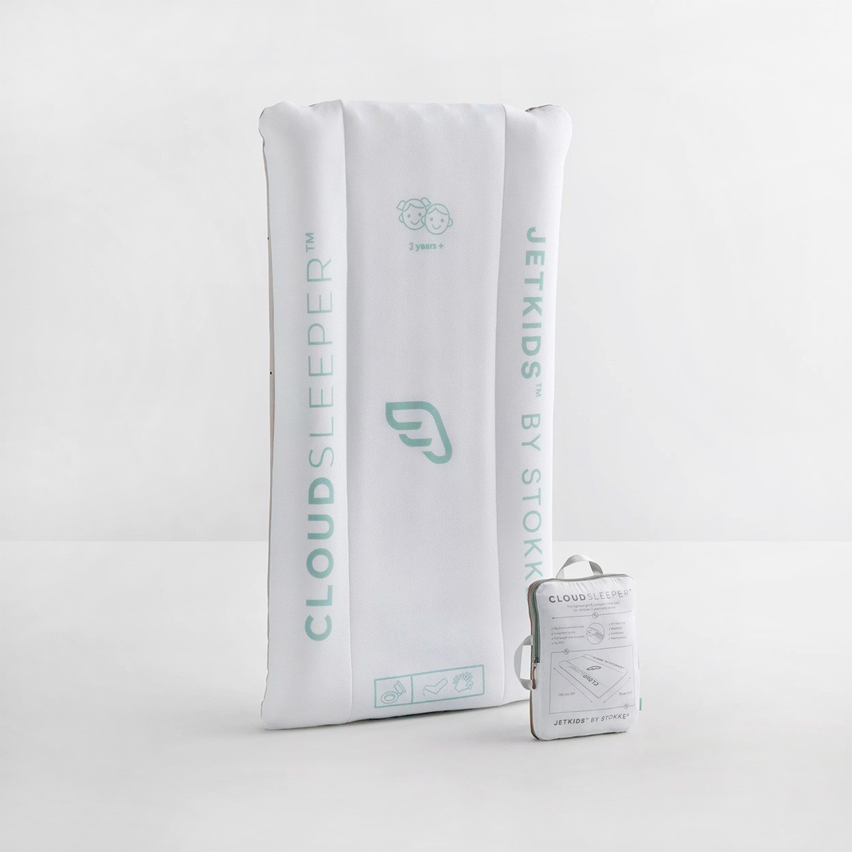 Cama hinchable infantil CloudSleeper de Stokke, ligera con todo incluido, no tiene piezas sueltas.