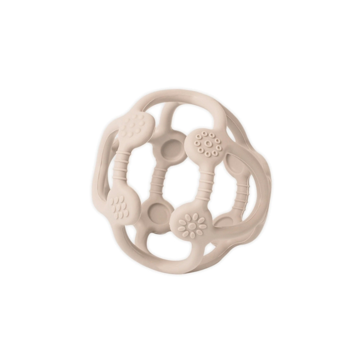 Pelota de silicona diseñada para estimular los sentidos de mordida y agarre. Esta innovadora solución alivia el dolor y las molestias asociadas con la dentición, suavizando las incomodidades de los dientes en crecimiento. Con superficies de mordida variadas, estimula los labios y la lengua mientras se masajean los dientes y se suavizan las encías. ¡Perfecta para manos pequeñas y dientes próximos!