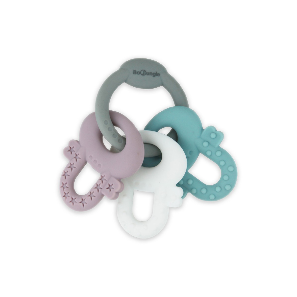 Este mordedor no solo alivia el dolor de la dentición, sino que también proporciona diversión y estimulación. Ideal para el desarrollo motor, cuenta con un diseño único de llaves que facilita el agarre. Fabricado con silicona ecológica.