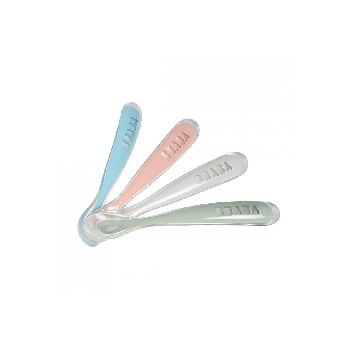Pack de cuatro cucharas de silicona de Beaba. Este pack de 4 cucharas tienen una forma ergonómica perfecta para los niños más pequeños.
