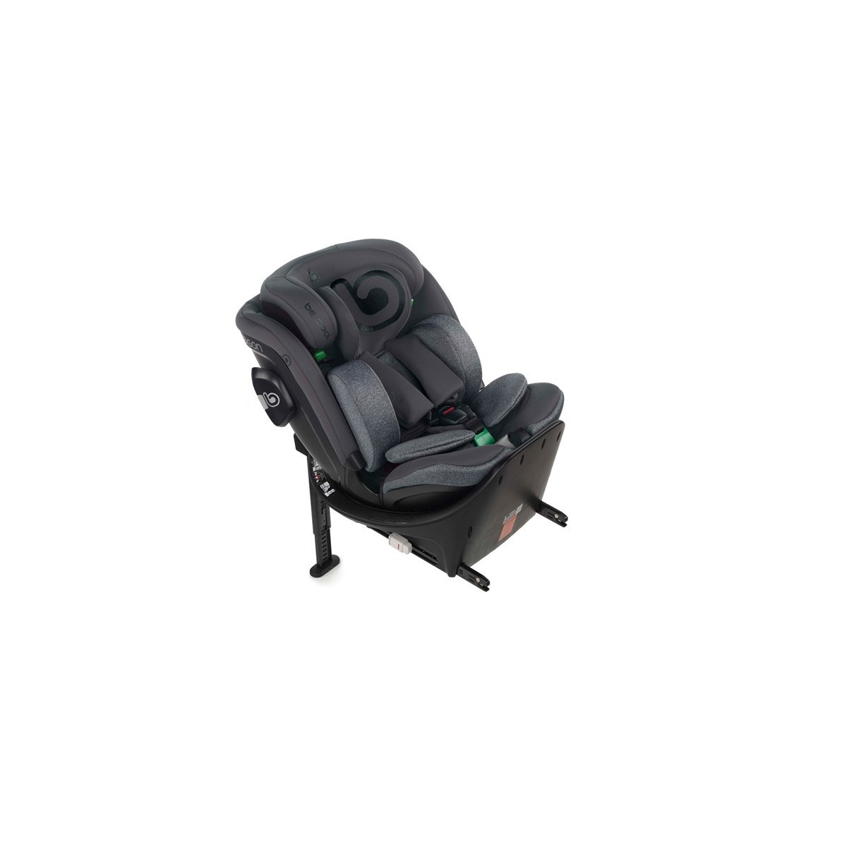 La carcasa queda dentro de la estructura de la base con lo que ofrece un plus de seguridad. Dispone de giro 360° con posición de carga que ayuda a colocar el bebé en la silla de coche.