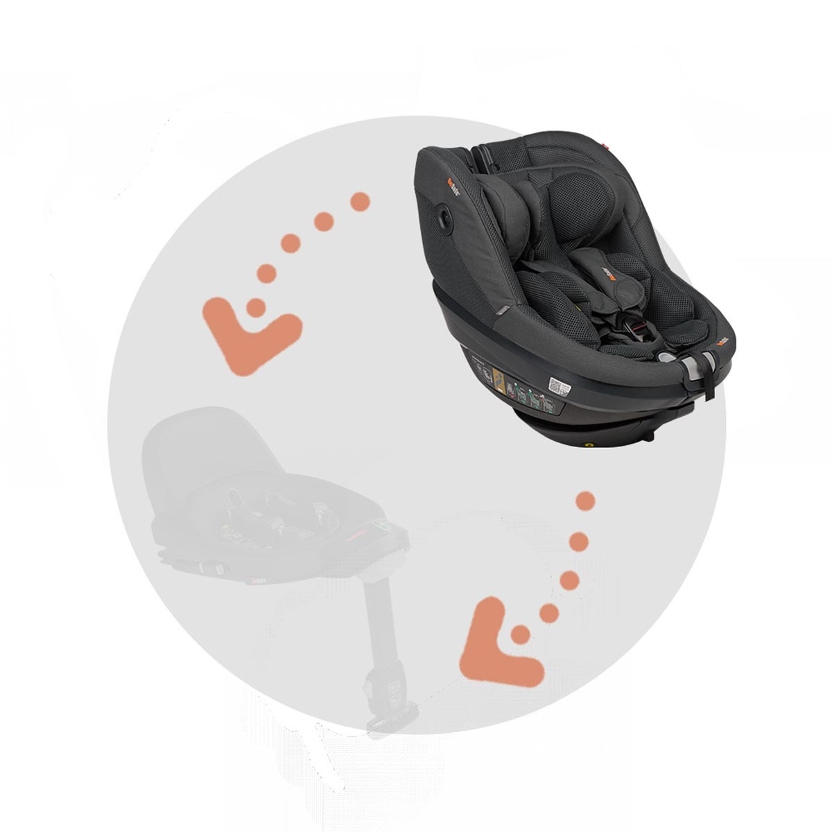 • Rotación 360°: permite girar el asiento en cualquier dirección, facilitando el acceso del niño y el cambio entre sentido de la marcha o contramarcha.