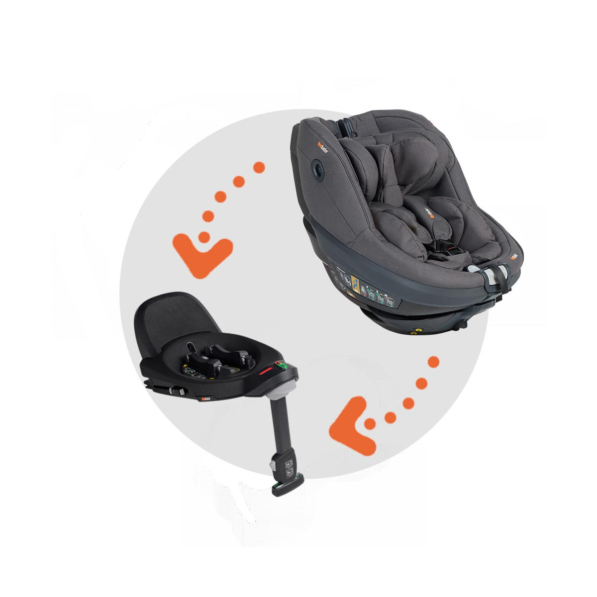 Rotación 360°: permite girar el asiento en cualquier dirección, facilitando el acceso del niño y el cambio entre sentido de la marcha o contramarcha.