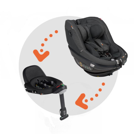 • Rotación 360°: permite girar el asiento en cualquier dirección, facilitando el acceso del niño y el cambio entre sentido de la marcha o contramarcha.