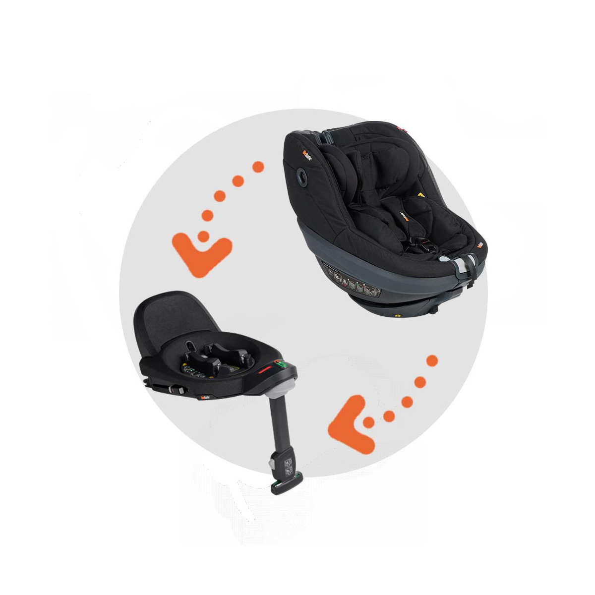 Rotación 360°: permite girar el asiento en cualquier dirección, facilitando el acceso del niño y el cambio entre sentido de la marcha o contramarcha.