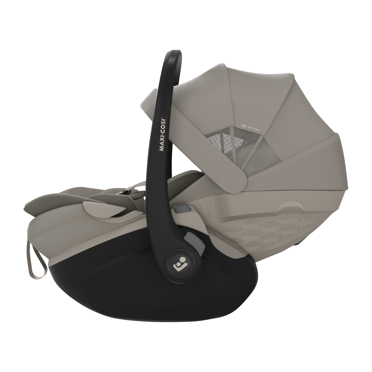 Desde el nacimiento —incluso para bebés prematuros a partir de los 40 cm— la Pebble Slide Pro ofrece una posición totalmente reclinada y ergonómica que mantiene las vías respiratorias del bebé abiertas durante el sueño, tanto en el coche como acoplada al cochecito. A medida que el bebé crece y prefiere estar más incorporado, la silla permite ajustar el ángulo de reclinado de forma sencilla para adaptarse a cada etapa hasta los 2 años.