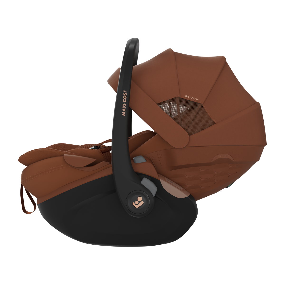Desde el nacimiento —incluso para bebés prematuros a partir de los 40 cm— la Pebble Slide Pro ofrece una posición totalmente reclinada y ergonómica que mantiene las vías respiratorias del bebé abiertas durante el sueño, tanto en el coche como acoplada al cochecito. A medida que el bebé crece y prefiere estar más incorporado, la silla permite ajustar el ángulo de reclinado de forma sencilla para adaptarse a cada etapa hasta los 2 años.