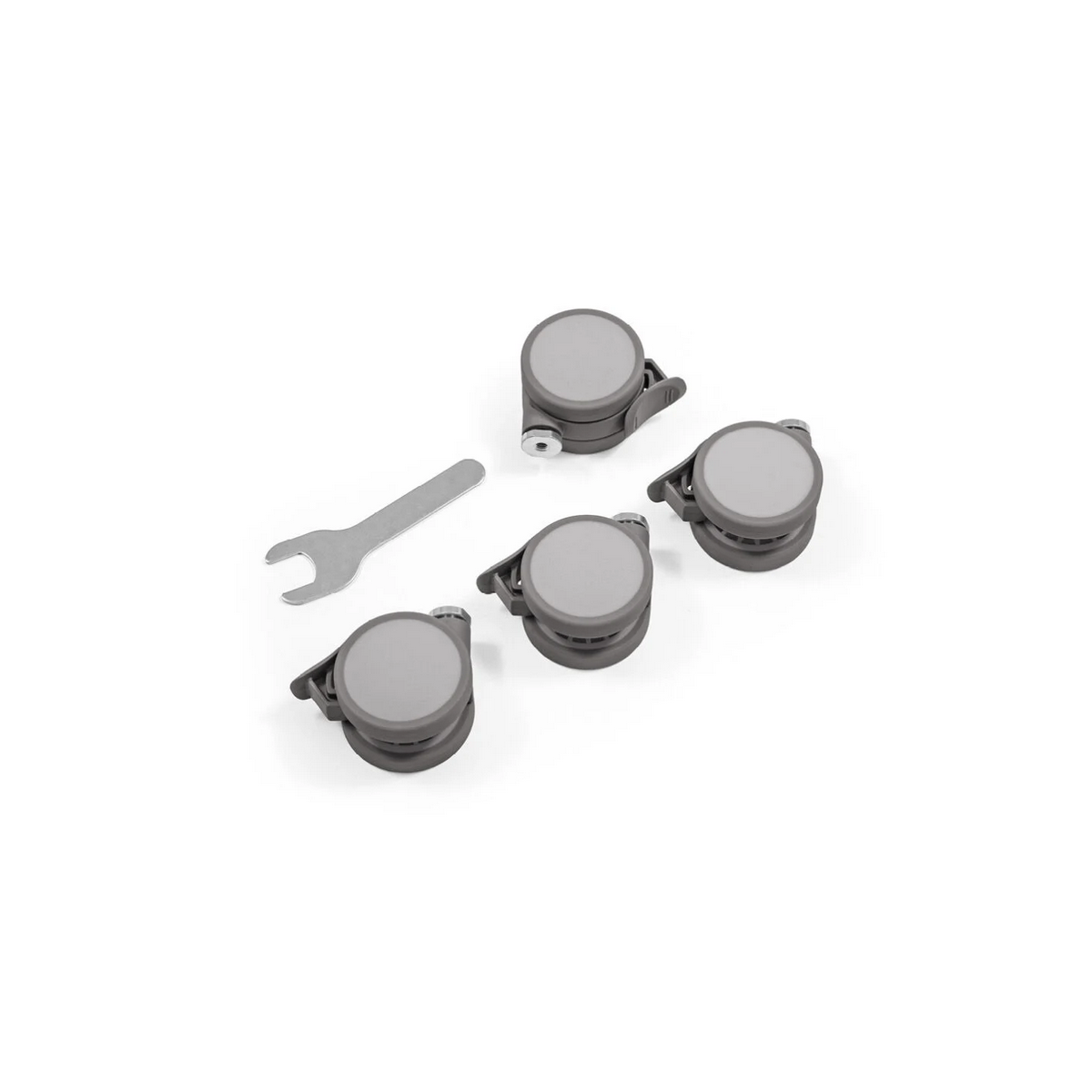 Conjunto de ruedas de recambio junto con tornillos para la cuna y minicuna Sleepi de Stokke.