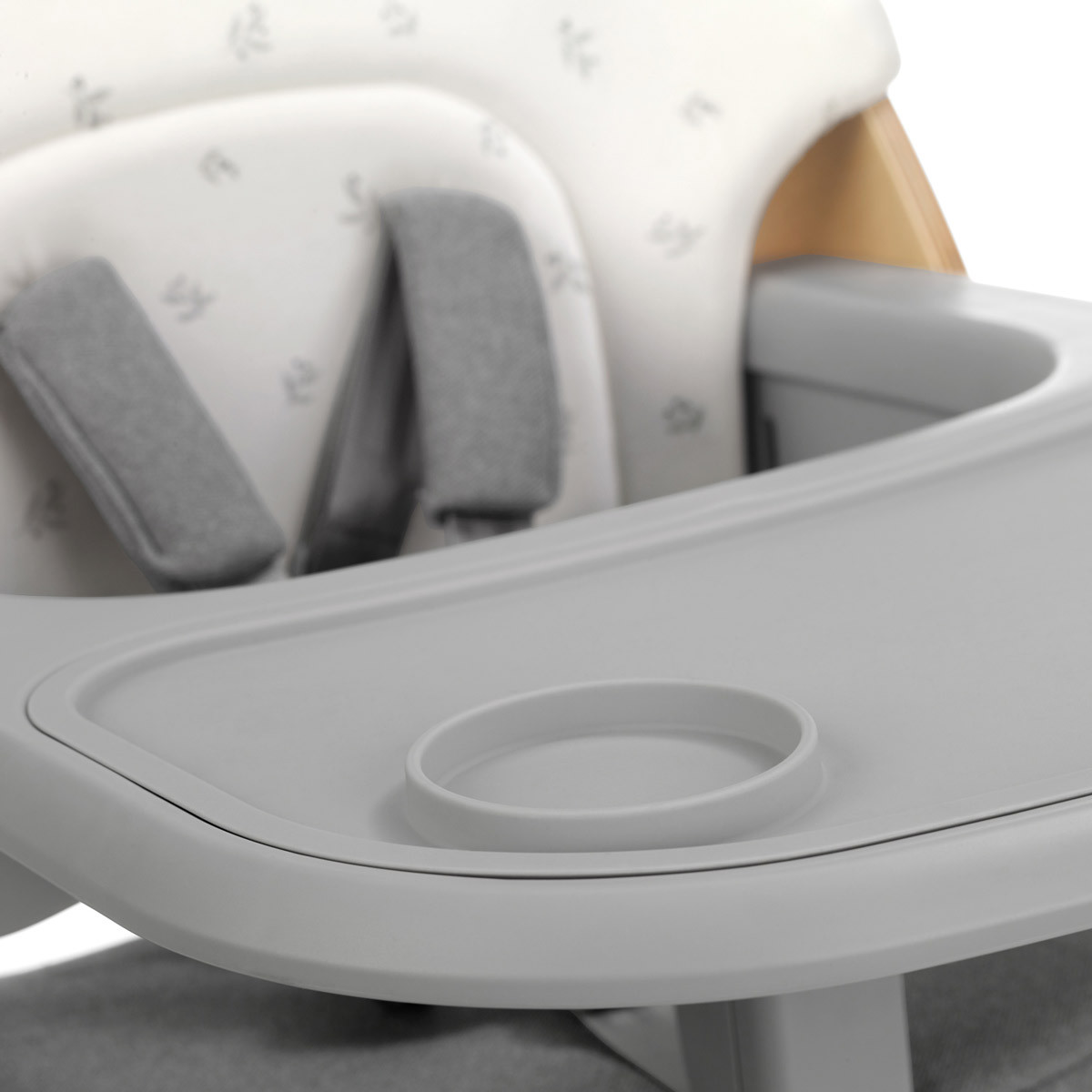 • Arnés de 5 puntos: sistema de sujeción con múltiples anclajes para garantizar la máxima seguridad durante la comida o el juego.