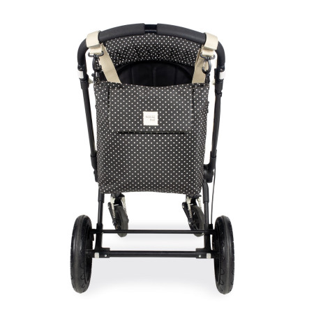 - La bolsa tiene un sistema universal de fijación, con 2 asas cortas ajustables que facilita la colocación en cualquier modelo de silla de paseo.